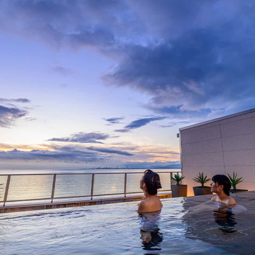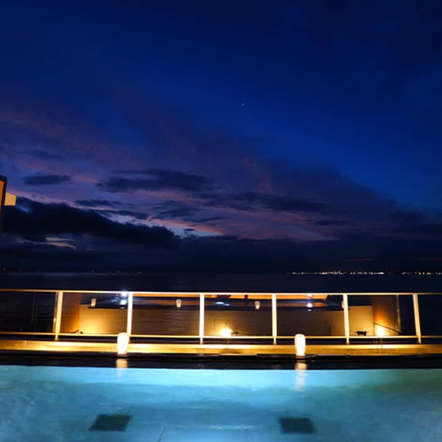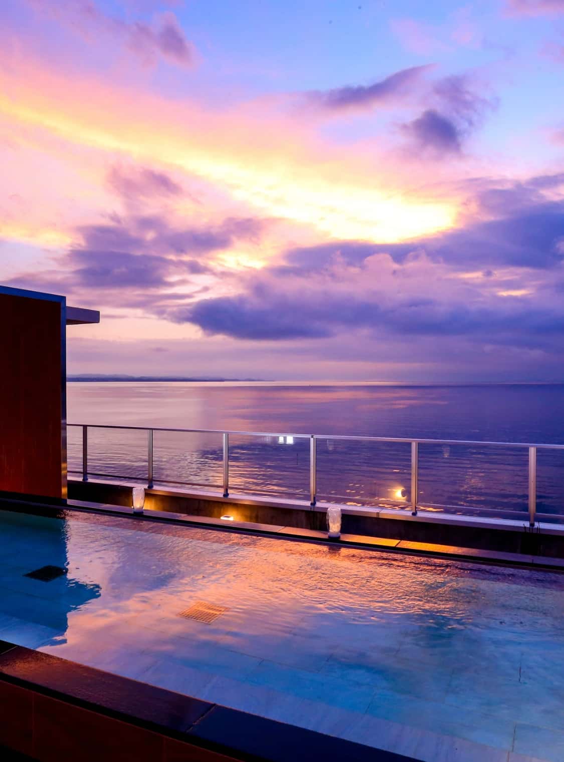 請在視野毫無遮蔽、彷彿與別府灣相連的露天風呂中,細細享受別府溫泉。一邊泡湯、一邊欣賞帶著神秘氛圍的朝霞染紅天際,是心靈得到洗滌的美好片刻