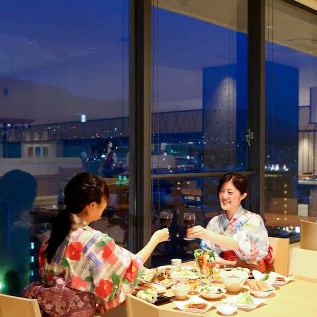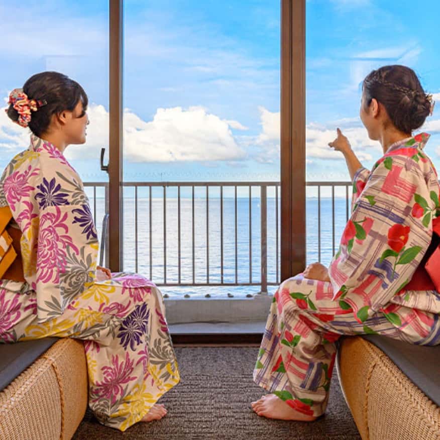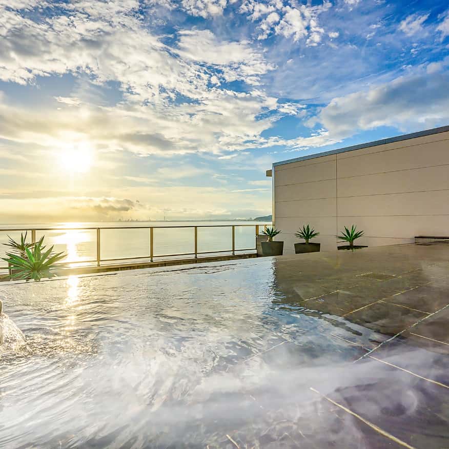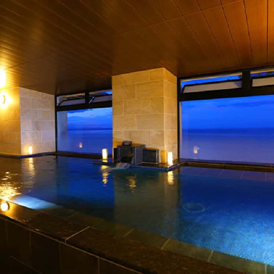 請在視野毫無遮蔽、彷彿與別府灣相連的露天風呂中,細細享受別府溫泉。一邊泡湯、一邊欣賞帶著神秘氛圍的朝霞染紅天際,是心靈得到洗滌的美好片刻
