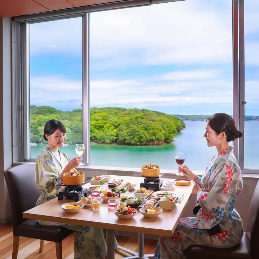 無論是露天溫泉或室內湯池,都能將英虞灣海景一覽無遺,是館內最自豪的景觀特色。伴隨天光與海色的變化、景致分秒不同,一邊泡湯一邊欣賞眼前絕景。請您放慢步調,度過悠然時光。