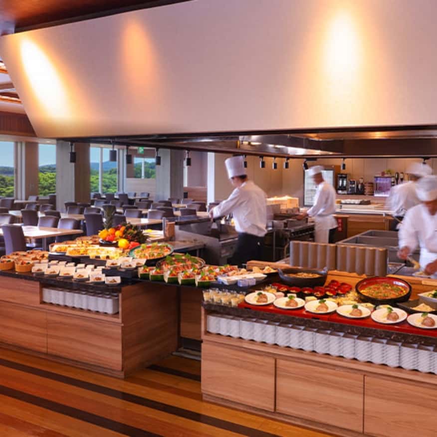 海景餐廳擁有寬敞的開放式廚房空間,餐點選擇豐富多元。