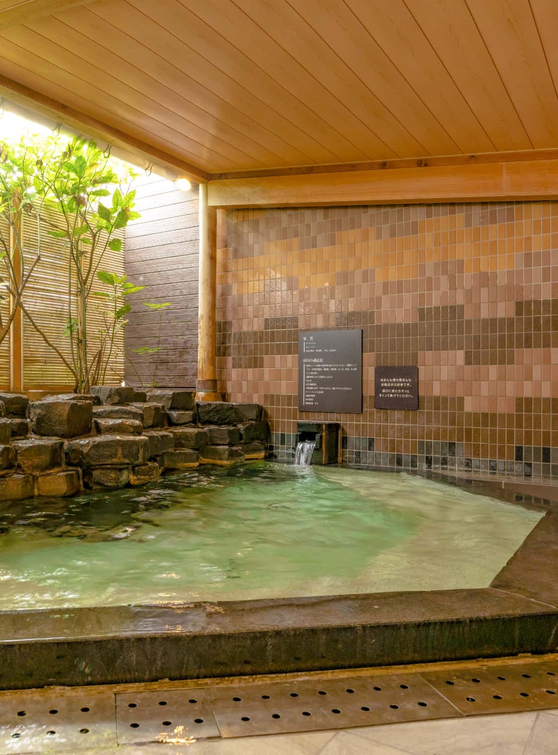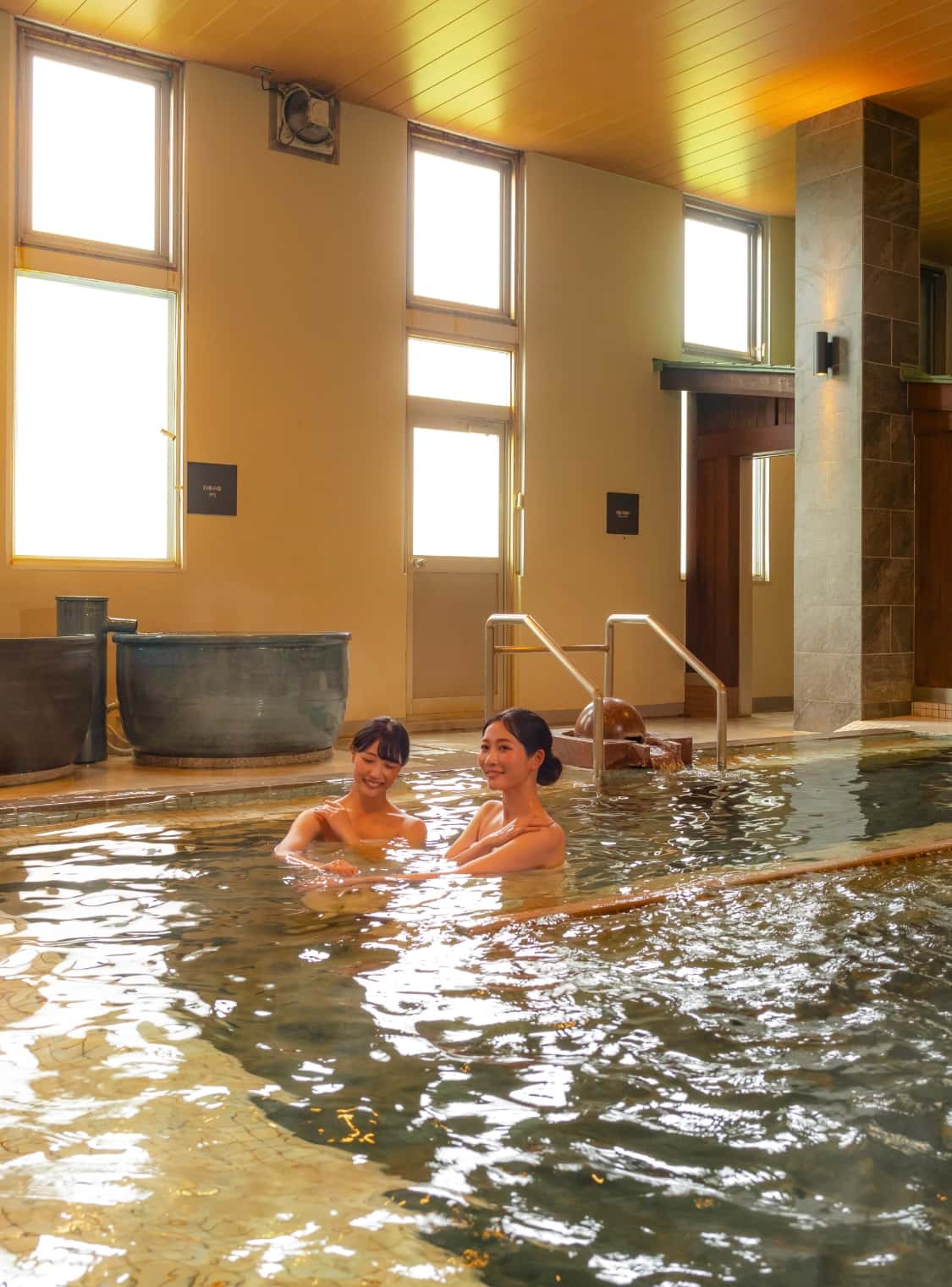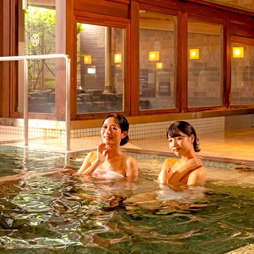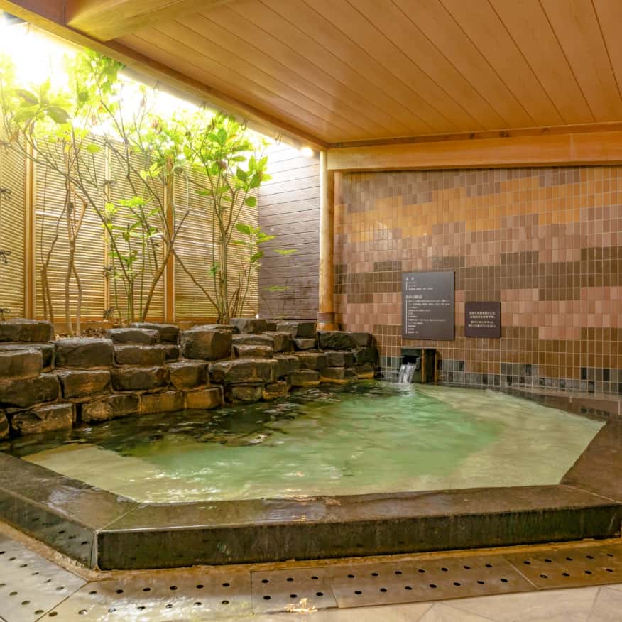 兩座大浴場以火山活動孕育而成的玄武岩為設計靈感,採男女輪替制。在「玄武之湯」還能體驗使用6種藥石的蒸氣桑拿。