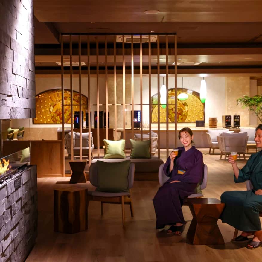 無論是辦理入住時或泡湯後,都可自由享用免費飲品。伴隨鬼怒川的自然景致與壁爐搖曳火光,度過一段奢華悠閒的時光。