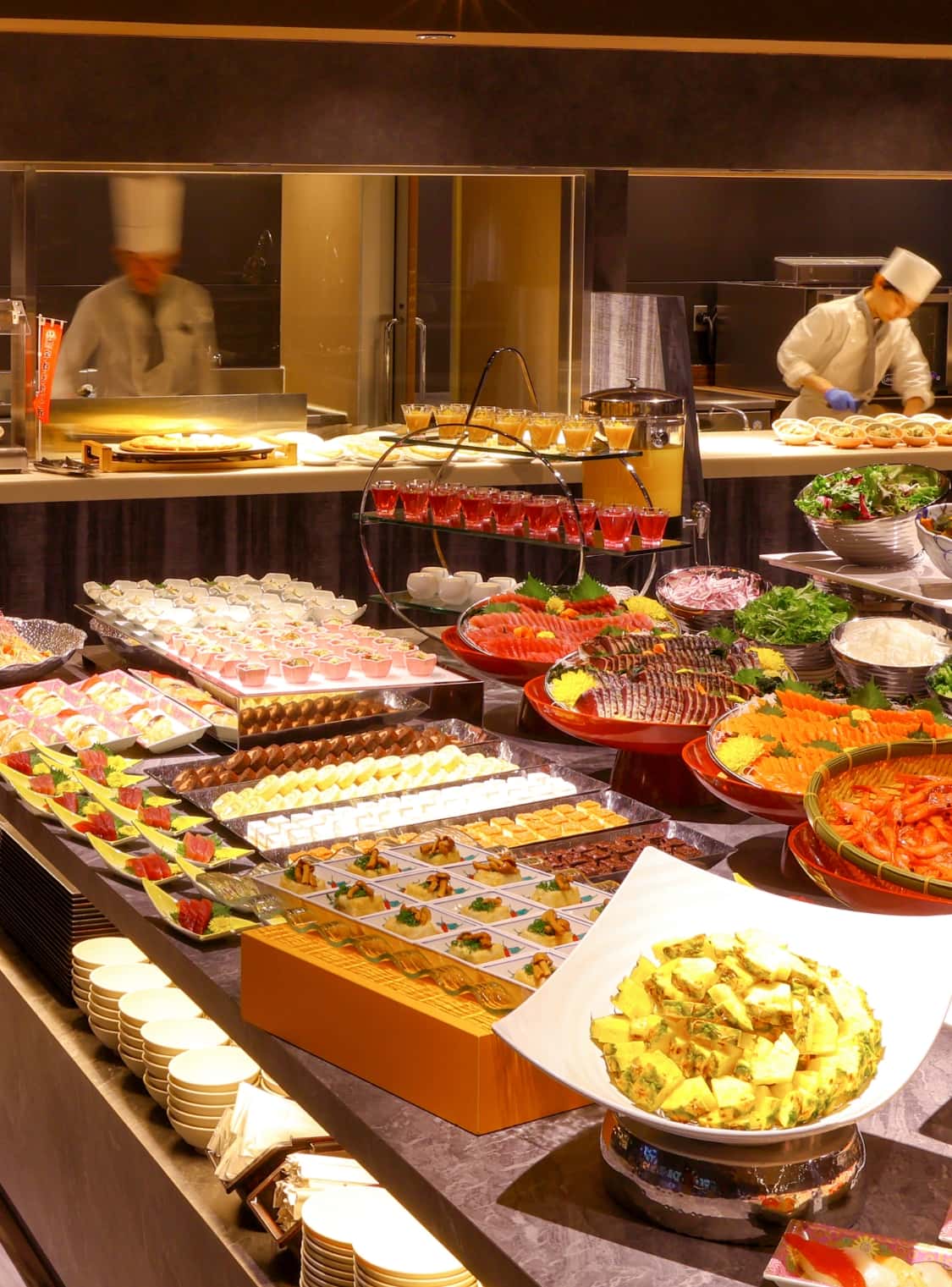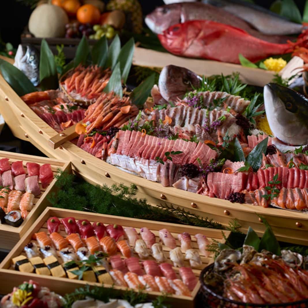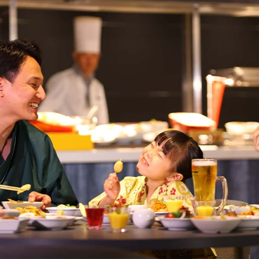 盡情享受大江戶溫泉物語自豪的「大江戶三つ星自助餐」。市場直送新鮮魚類、黑毛和牛等頂級食材任您大快朵頤。