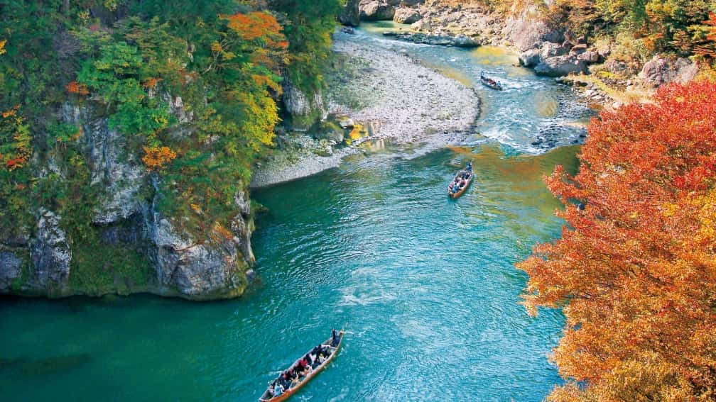 鬼怒川河畔座落著眾多溫泉旅館,形成充滿風情的溫泉街。