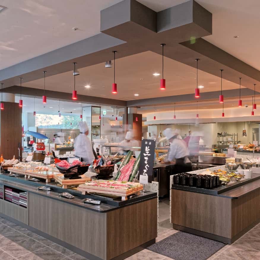 享用大江戶溫泉物語集團中最豪華的「大江戶三つ星自助餐」。市場直送新鮮魚類、黑毛和牛等頂級食材、採自助餐形式讓您盡情享用。