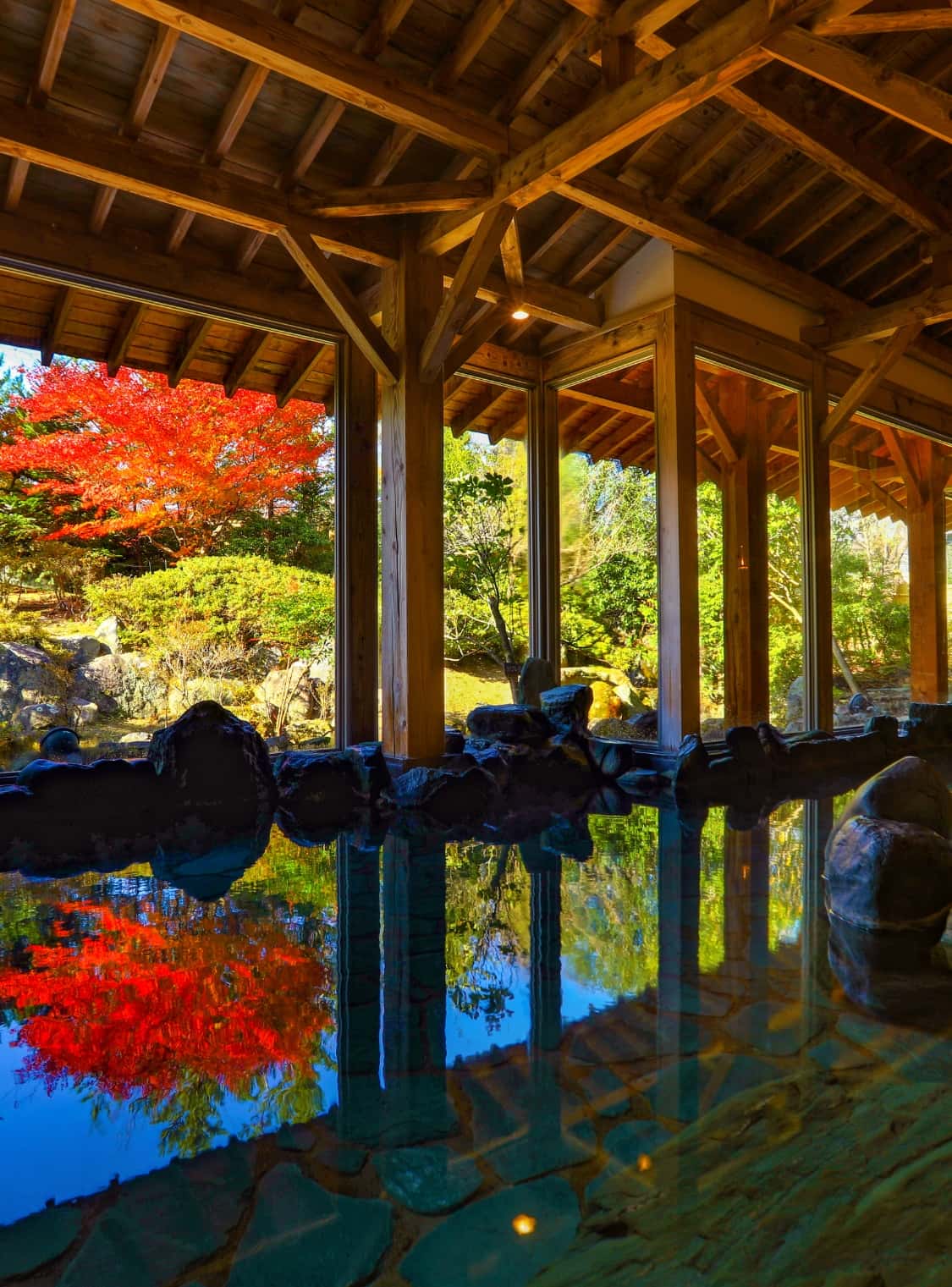 典雅庭園與悅耳瀑布聲療癒身心,寬敞的大浴池