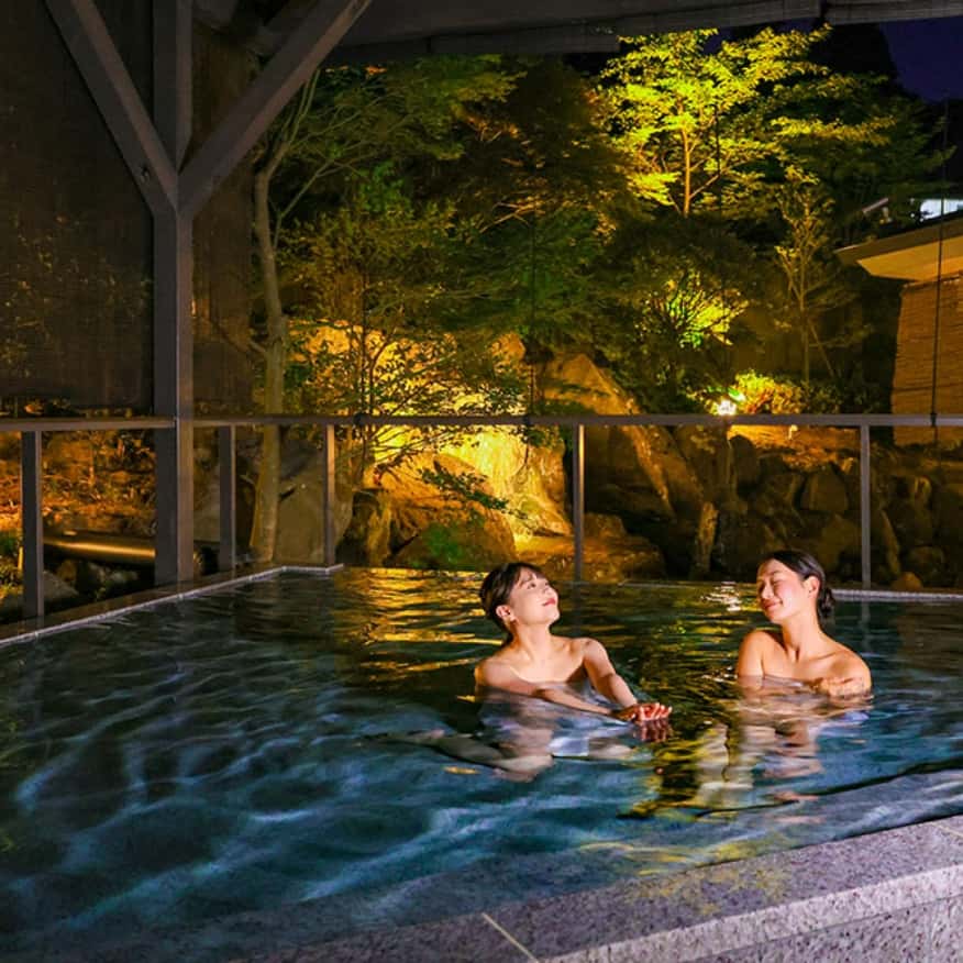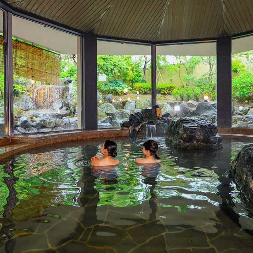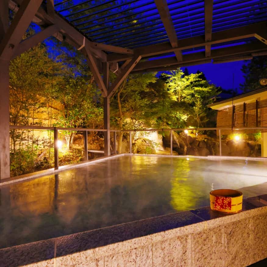 典雅庭園與悅耳瀑布聲療癒身心,寬敞的大浴池
