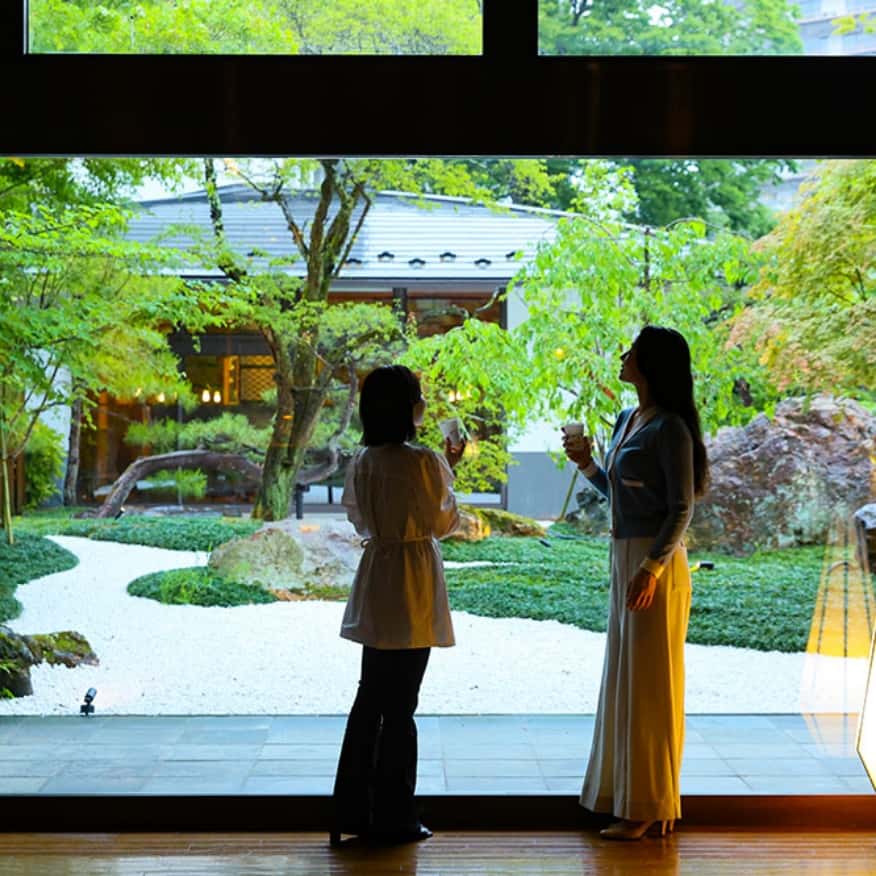 能透過大窗觀賞庭園美景的開闊室內湯池,備有兩種不同水溫,您可依個人喜好自由選擇。