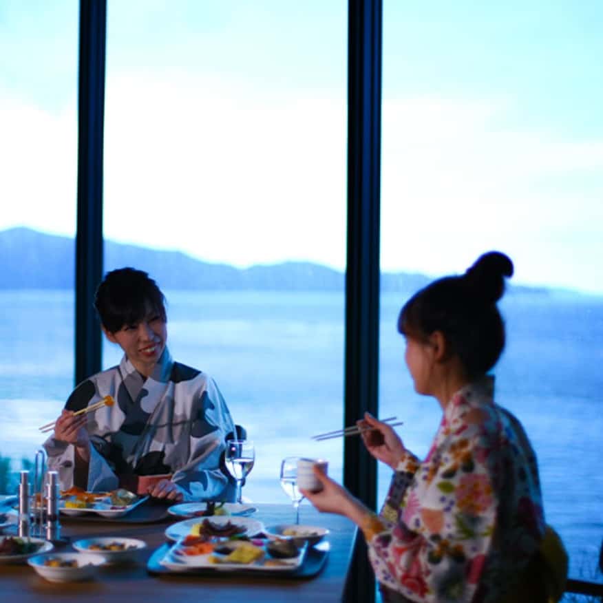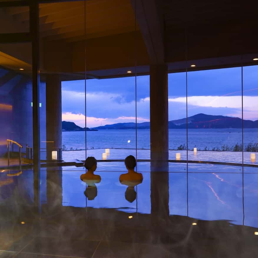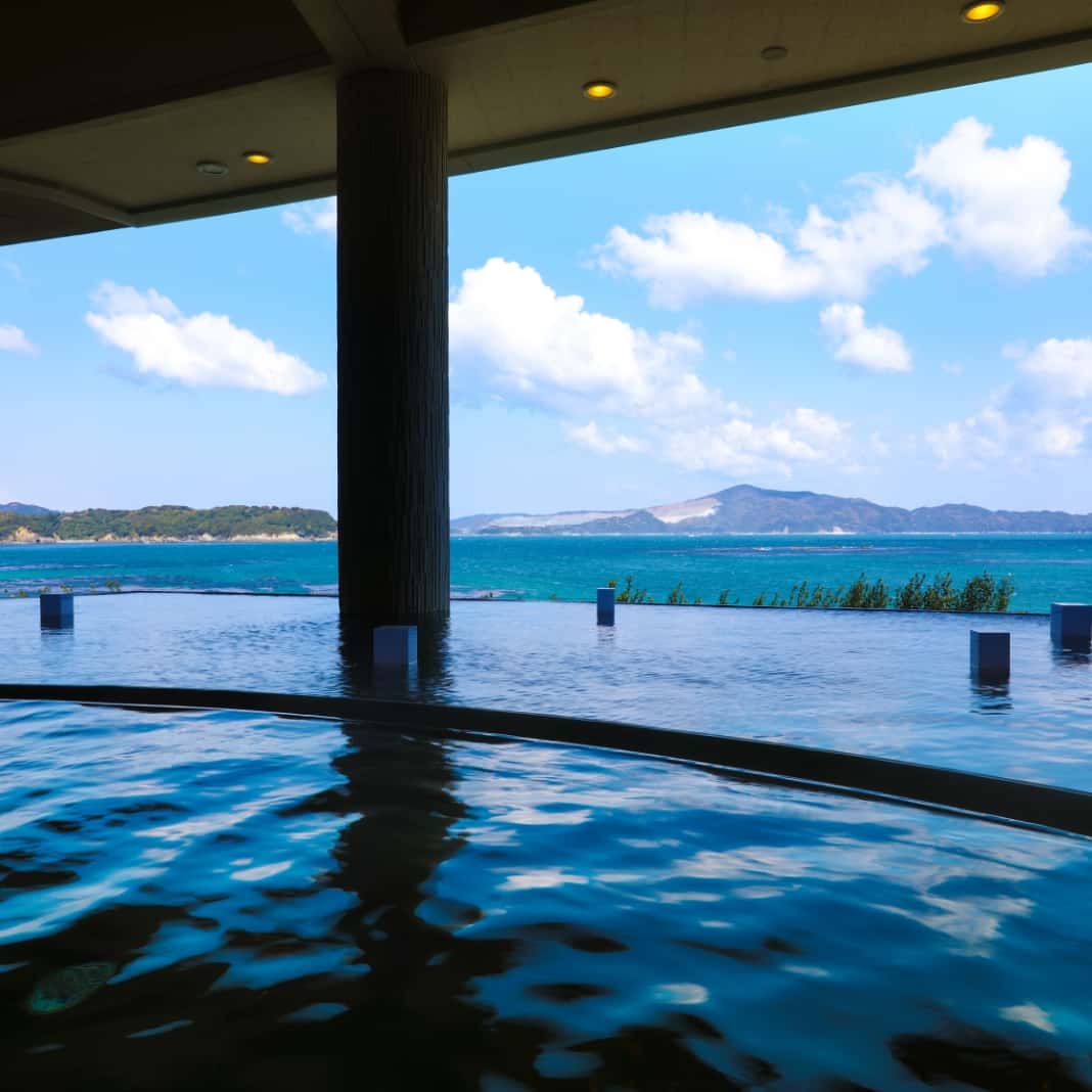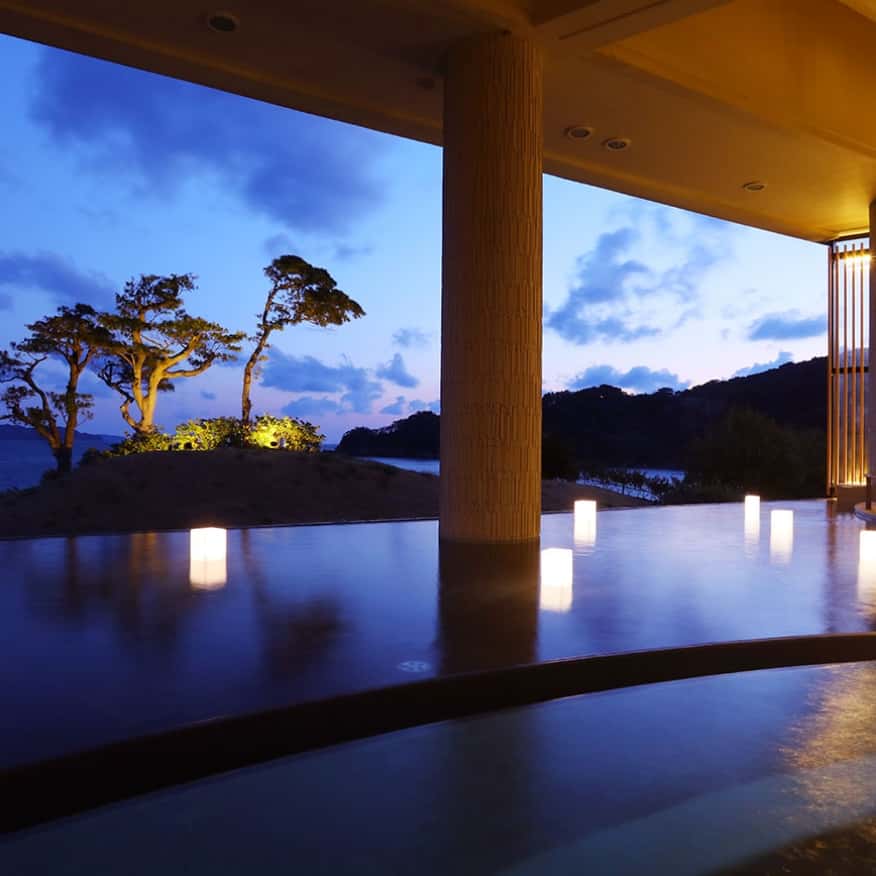 在彷彿與大海融為一體的露天溫泉裡,伴隨耳邊的浪濤聲,仰望湛藍晴空或被夕陽染紅的美麗天際,欣賞隨時間變化的絕景,度過悠然的溫泉時光。