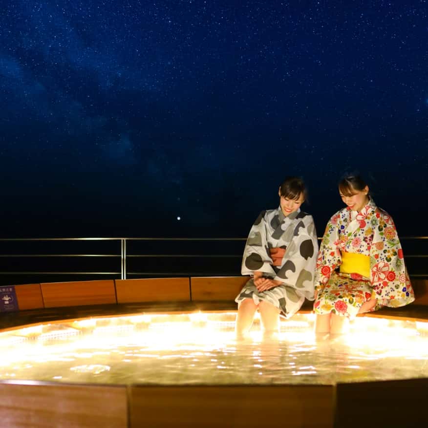 日落後推薦前往星空露台。可在足湯中放鬆身心,同時欣賞閃爍的星空。請在星空下度過悠閒靜謐的時光。